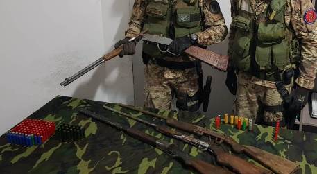 - i Carabinieri della Stazione di Sant’Ilario dello Jonio, nel corso di un rastrellamento in località Moleti di Ciminà, hanno rinvenuto tre fucili “Flobert” senza matricola, un fucile sovrapposto “Beretta” con matricola punzonata e oltre 120 munizioni di vario calibro. Il materiale, in ottimo stato di conservazione, era nascosto all’interno di un tubo di plastica interrato tra la fitta vegetazione;