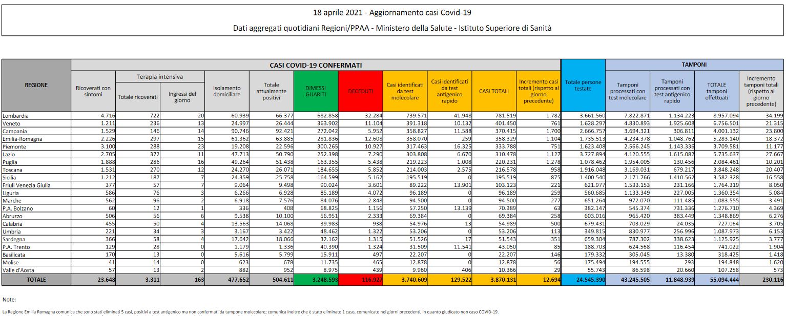 La regione con il maggior numero di nuovi casi nelle ultime 24 ore è la Lombardia (1.782), seguita da Campania (1.700), Puglia (1.278), Lazio (1.127) e Emilia-Romagna (1.104).