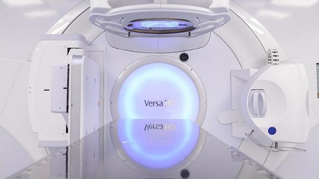 A pieno regime i due acceleratori consentono di trattare 100 pazienti al giorno, per un totale di 2800 prestazioni radioterapiche al mese e 33.600 all’anno, per un trattamento radioterapico della durata media di 28 giorni consecutivi con interruzione programmata – perché prevista dai protocolli terapici – il sabato e la domenica. Uno dei due Acceleratori, in particolare, il Versa HD Electa – esegue l’IMRT, ovvero la Radioterapia a fasci modulati: un trattamento di gran lunga meno invasivo di quelli tradizionali che consente di erogare dosi molto più elevate di radiazioni ionizzanti, recando meno danni agli organi limitrofi alla zona trattata.