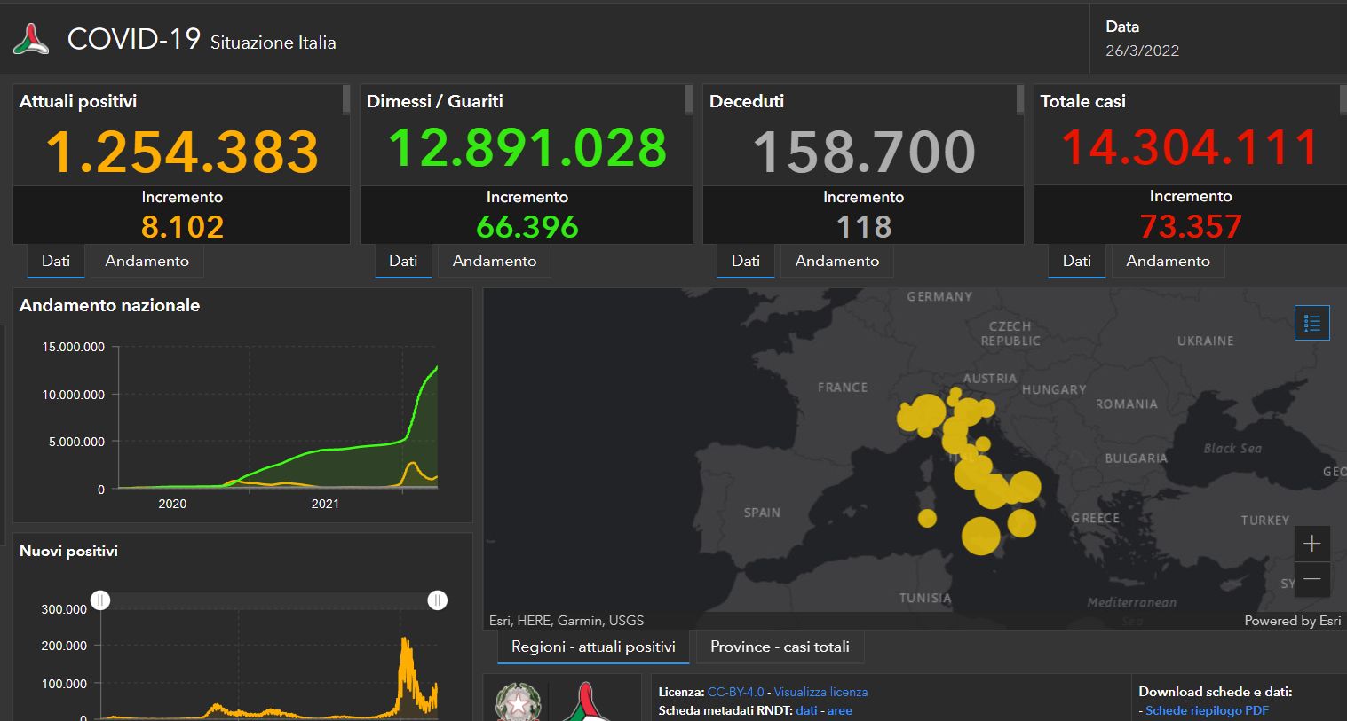 La regione con il maggior numero di nuovi casi nelle ultime 24 ore è la Lombardia (8532), poi Lazio (8445), Campania (8243), Puglia (7909) e Sicilia (7163).