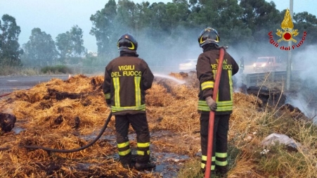 il carico di 140 balle di fieno stipate su un autocarro, si è incendiato mentre