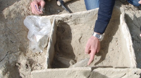 Immediatamente viene contattato il Dott. Morelli Paolo Nereo, Ispettore onorario del Ministero dei Beni e delle Attività Culturali e del Turismo per la tutela archeologica del territorio di Crotone e sua provincia che, giunto sul posto dopo pochi minuti, conferma ai finanzieri il grandissimo valore della loro scoperta. Si tratta infatti di una rarissima testimonianza di insediamento dell’età del bronzo medio, 1600-1550 al 1325 a.C. quindi molto tempo prima dell’arrivo degli Achei dalla Grecia. Nella fattispecie una sepoltura a tomba a cista con urna cineraria.