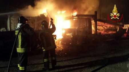 Le squadre dei vigili del fuoco di Crotone hanno lavorato tutta la notte per spegnere le fiamme