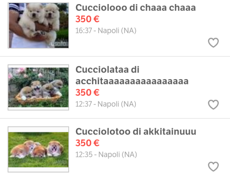 di cani di razza a prezzi competitivi, ma ovviamente senza alcuna garanzia e sopratutto