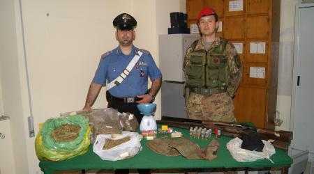 Nel corso dei servizi di controllo del territorio da parte dei carabinieri della Compagnia di Villa San Giovanni, con l’impiego dei militari della Stazione di Sinopoli unitamente ai militari dello Squadrone Eliportato Cacciatori “Calabria” di Vibo Valentia, è stato tratto in arresto ALVARO Giuseppe cl. 1962, originario di Sinopoli responsabile di detenzione di armi clandestine, munizioni e grande quantità di stupefacenti. L’arresto è scattato a seguito di alcune perquisizioni domiciliari estese anche ai terreni di proprietà dell’Alvaro. In particolare, nel corso di una perquisizione in un terreno agricolo e in un casolare di proprietà situato in zona aspromontana, i militari hanno rinvenuto, abilmente occultato,il seguente materiale illecitamente detenuto:
