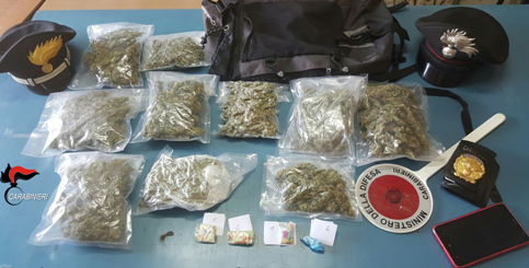 L’intuizione dei Carabinieri si rivelava esatta, infatti, occultati all’interno di uno zainetto, venivano rinvenuti 500 gr. di sostanza stupefacente del tipo Marijuana ed ulteriori 20 gr. di Cocaina, all’interno di diversi contenitori termosaldati.