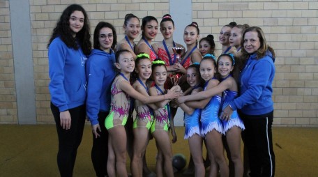 Le atlete junior e senior, la cui preparazione è stata curata dalle istruttrici Ylenia Albanese, Valeria Cannizzaro e Francesca Spanti, si sono cimentate in un esercizio di squadra ai 5 cerchi, uno di coppia palla-fune e uno individuale alla palla. Tutti esercizi ricchi di collaborazioni, scambi e difficoltà d’attrezzo, molti complessi ma egregiamente eseguiti e interpretati.