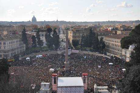 (ANSA) “Mi è sembrato un pretesto per sostenere il teorema giudiziario che non ha nessun riscontro nella realtà: una mobilitazione di parte, faziosa, contro la mia persona da parte di una sinistra che cavalca qualsiasi mezzo per abbattermi”. Lo ha detto il premier Silvio Berlusconi, intervistato da Maurizio Belpietro, in collegamento telefonico con ‘Mattino Cinque’, a proposito delle manifestazioni di ieri delle donne e definendo una “vergogna” questo teorema. “Tutte le donne che hanno avuto modo di conoscermi – ha aggiunto – sanno con quanta considerazione e rispetto io mi rapporto con loro”. Una marea di più di un milione di persone “indignate” è scesa in piazza, in Italia e nel mondo, per dire basta a una cultura che nega la dignità delle donne e per chiedere le dimissioni di Silvio Berlusconi. Ha superato le più rosee aspettative la mobilitazione nata intorno all’appello “Se non ora quando”, che in pochi giorni e con il fondamentale ausilio di Internet ha scatenato, con un effetto-valanga, manifestazioni in 230 città in Italia e una trentina all’estero. Roma in primo luogo, ma anche Milano, Torino, Napoli e così via in giro per l’Italia e per il mondo fino all’altra parte del globo, a Honolulu e Auckland: un grido si è levato oggi pomeriggio dalle piazze: “ora basta!”. Piazze enormi come quella del Popolo a Roma si sono riempite di donne e di uomini “amici delle donne”, tutti arrivati senza bandiere di partito ma solo con qualche tricolore e tanti cartelli, tutti contro il premier: “Berlusconi indegno”, “Io donna cattolica dico basta! B vai via”, “Napolitano: una Clio tutta la vita – Berlusconi: una escort tutte le notti” e anche “Dimettiti! Grande capo culo flaccido”. E contro Berlusconi si è levato l’urlo della folla prima dell’inizio della manifestazione romana: “Dimettiti!”. La rabbia della gente in piazza è infatti più esplicita e diretta di quella delle donne sul palco, che quasi mai pronunciano il nome di Berlusconi e puntano invece sui temi della dignità delle donne e della rivendicazione di un nuovo ruolo. Star applauditissime della kermesse romana, la leader della Cgil Susanna Camusso e la deputata finiana Giulia Bongiorno. “La misura è colma” ha detto dal palco Camusso, che ha definito quella di oggi “una rivoluzione culturale che si muove dal basso”, che parte “non dalle gerarchie ma dal popolo: é davvero un Paese che non ne può più”. E per Bongiorno “oggi siamo e dobbiamo essere protagoniste, non comparse. L’unico contesto in cui vedo le donne protagoniste sono le barzellette, soprattutto se le barzellette provengono da Arcore”. In piazza anche le prostitute – il Movimento per i loro diritti aveva annunciato l’adesione – che si sono presentate con un ombrellino rosso e un gruppetto di loro ha sfilato per le strade del centro di Roma con uno striscione che recitava “Sul nostro corpo nessuna strumentalizzazione, diritti e welfare per tutte”. E c’é stato anche un piccolo, festoso blitz di circa duecento manifestanti che si sono recati davanti a Montecitorio per chiedere le dimissioni di Berlusconi e lasciare regalini ironici ai parlamentari.