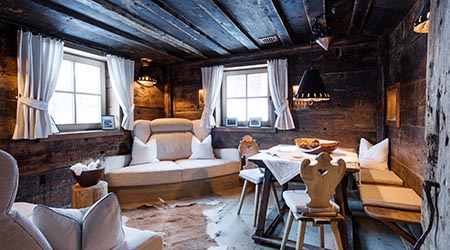 La sala relax trova la sua giusta ambientazione in una Stube gotica del 13esimo secolo, arredata con legno di cirmolo che conta ben 800 anni! Già questo basterebbe per farne una location esclusiva e preziosa, se non fosse per l’arredo e il design che la contraddistingue. Il divanetto ad angolo e le poltrone in loden con i morbidi cuscini color burro, i lettini ergonomici in legno con materassini nocciola posizionati davanti alle finestre, il tavolino e le sedie tipiche del periodo. E poi la cura per i dettagli che fanno la differenza, foto di famiglia di tempi passati, ceppi con sacchettini di fieno e pigne. Tutto è studiato fin nei minimi particolari.