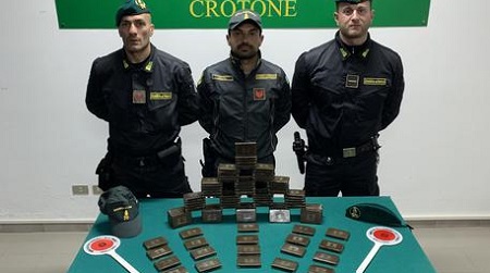 I Baschi Verdi del Gruppo della Guardia di Finanza di Crotone hanno arrestato un pregiudicato che viaggiava a bordo di un auto con 9,5 chili di hashish. I finanzieri del comparto Anti terrorismo pronto impiego hanno sottoposto a controllo l’auto guidata da M.G. all’ingresso di Crotone dopo avere notato il conducente effettuare una serie di sorpassi in tratti di strada dove era vietato. Grazie al sistema informatico “Grifo”, i militari hanno subito accertato di trovarsi di fronte un pluripregiudicato con precedenti specifici in materia di droga. Sono state fatte intervenire le unità cinofile antidroga – Babel e Val – che con il loro fiuto hanno segnalato la presenza di sostanza stupefacente. Sono stati scoperti così vari panetti di hascisc nascosti nelle intercapedini dei passaruota posteriori della vettura. La droga, se immessa sul mercato, avrebbe fruttato oltre centomila euro.