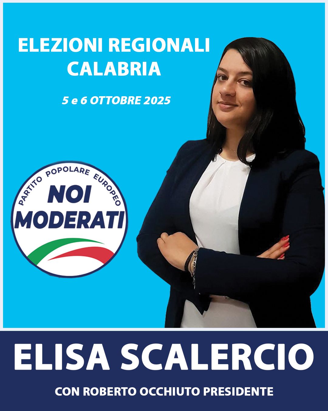 “Voglio rivolgere il mio appello a tutti i concittadini Calabresi, ma in particolare a quelli della mia generazione” così Elisa SCALERCIO, candidata nelle liste di NOI MODERATI alle elezioni regionali del 5 e 6 ottobre 2025 a sostegno del Presidente Roberto Occhiuto.