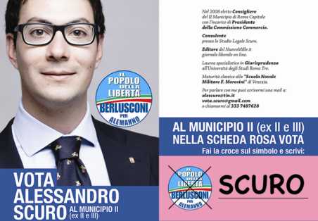 Le Amministrazioni municipali, necessitano di una classe dirigente costituita da uomini giovani, capaci, volenterosi, esperti che hanno a cuore solo l’interesse dei cittadini, e Alessandro Scuro, coagula il meglio che la società civile possa offrire, finalmente gli elettori del II° Municipio, hanno la possibilità di poter scegliere una persona degna per l’incarico che andrà a ricoprire. Votare Alessandro Scuro, significa dare un voto ad un uomo che si è sempre battuto per difendere i diritti dei deboli e dei senza voce.
