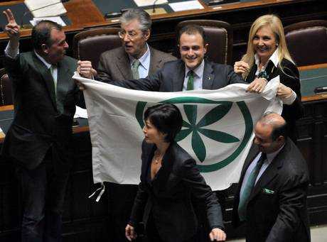 LEGHISTI SVENTOLANO IN AULA BANDIERE DEL NORD – Tutti i deputati della Lega hanno sventolato nell’Aula della Camera le bandiere delle regioni del Nord e con il sole delle Alpi, dopo che il vicepresidente Antonio Leone ha proclamato il risultato della votazione sulla fiducia sul federalismo municipale. Fra i leghisti c’era anche il presidente del Consiglio, Silvio Berlusconi che si e’ unito all’applauso dei deputati del Carroccio. Vedendo la scena, Leone ha chiesto l’intervento dei commessi per rimuovere le bandiere sospendendo brevemente la seduta.