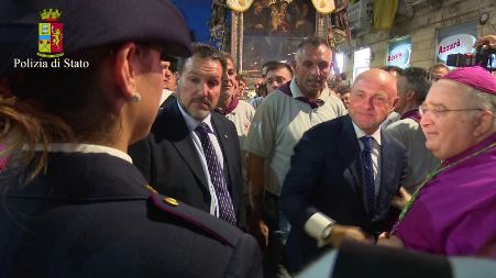 La sinergica collaborazione di tutte le Forze di Polizia impiegate, degli Enti Pubblici interessati e delle Associazioni di volontariato, ha consentito di garantire la sicurezza dell’evento che ha visto la partecipazione di numerose Autorità e di migliaia di fedeli. Il dispositivo realizzato a seguito di specifico tavolo tecnico ha previsto la collocazione di ostacoli fissi per impedire il transito di veicoli che potevano compromettere la sicurezza dei partecipanti all’evento, nonché, una serie di servizi di osservazione e vigilanza per le vie percorse dalla processione. Accurati servizi di viabilità e vigilanza dinamica sono stati effettuati lungo tutte le arterie che hanno interessato l’itinerario della cerimonia, consentendo il normale svolgimento della processione e garantendo, altresì, un ordinato deflusso dei fedeli.