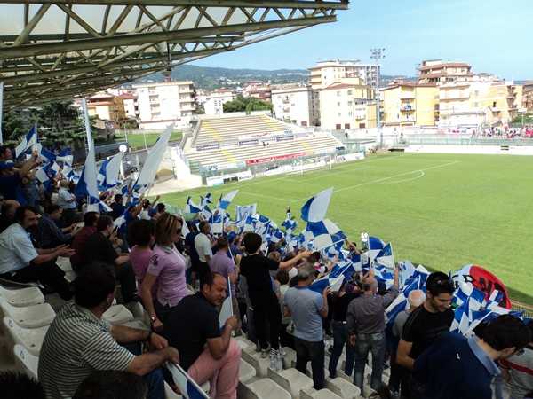 E’ festa Siderno. I biancoblù di Fiorenza superano il San Lucido e conquistano l’Eccellenza a tre anni di distanza dall’ultima volta. Esce a testa alta il San Lucido, arrivato parecchio rimaneggiato all’appuntamento ma rimasto in gara sino alla fine. Andiamo alla partita. Al 4’ Siderno subito vivo con un tiro di Candido dalla distanza terminato di poco alto. Pronta la risposta del San Lucido in contropiede con De Rose che serve lateralmente De Luca il quale calcia sull’esterno della rete.Al 7’ clamorosa chance per gli jonici: De Leo mette brucia sul tempo Longobardi, il suo tiro è respinto dalladifesa tirrenica ma finisce sui piedi ci Accinni il quale conclude a colpo sicuro ma trova sulla sua strada Scarpelli. Al 12’ De Leo triangola con Catalano il quale con un tiro cross in mezzo tenta di servire Accinnianticipato da Scarpelli. La gara è viva. Al 14’ Catalano lascia sul posto Longo, serve sulla destra Rumbo il quale indisturbato penetra in area di rigore e con un tiro preciso fulmina Scarpelli. Al 20’ Falcone si avventasu un pallone vagante e dai trenta metri scarica un bolide che centra in pieno il palo. Passano 8’ e Candido,dal limite ha tutto il tempo di controllare il pallone e calciare dal limite dell’area. Palla che si abbassaimprovvisamente ma esce pochi centimetri sopra la porta di Scarpelli. Alla mezz’ora gli uomini di Fiorenza ancora pericolosi, stavolta con la complicità del San Lucido: Catalano scende sulla sinistra, prova il tiro conBruno che anticipa il proprio portiere rischiando l’autogol visto che la palla termina pochi centimetri soprala traversa. Dal susseguente calcio d’angolo altro brivido per gli uomini di Carnevale: Accinni viene lasciatosolo e ha tutto il tempo di colpire al volo, la palla viene intercettata a due passi dalla porta da Marulla G.che di testa corregge sulla traversa. Al 40’ cosentini pericolosissimi: ancora una volta tutto meritodell’encomiabile Falcone che si destreggia tra le maglie avversarie ma la sua parabola velenosa termina dipoco alta. Ma sul ribaltamento di fronte ecco il raddoppio: Marulla A. prova la conclusione respinta dalladifesa avversaria, Catalano recupera palla, penetra in area e spedisce in rete con un tiro potente e preciso. Al 46’ ecco il lampo del San Lucido che riapre la partita:punizione dal limite di Cairo che becca De Luca solo in mezzo all’area, il colpo di testa dell’attaccante rossoblù centra il palo interno e si insacca. Ad inizio ripresa i lupi presentano una novità: Chianello prende ilposto dell’infortunato De Luca, con Chiappetta che già dalla fine del primo tempo aveva preso il posto diesterno bassa di destra. Dopo 2’ De Leo avrebbe la palla del 3-1, ma dopo aver approfittato di uno svarionedi Chiappetta a tu per tu si fa ipnotizzare da Scarpelli. Al 4’ episodio dubbio: De Luca sottomisura correggein rete un assist di un compagno ma Cantafio ravvisa una posizione di fuorigioco. Al 11’ azione. personale di Catalano che aggira Cairo e spedisce di pochissimo a lato. Poco dopo Catalano imbecca Rumbo sulla destra,cross in mezzo di quest’ultimo smorzato di testa da De Leo ma Accinni in sforbiciata fa la barba al palo. Al 38’Chianello semina il panico in area sidernese ma tarda nel tiro e la suaconclusione risulta poco pericolosa. Finisce così con la festa del Siderno.