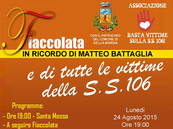 del piccolo Matteo Battaglia e di tutte le vittime della S.S.106 in Calabria.