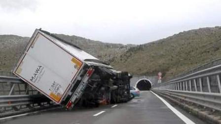 Si ribaltano due mezzi pesanti sulla A2 per il forte vento
