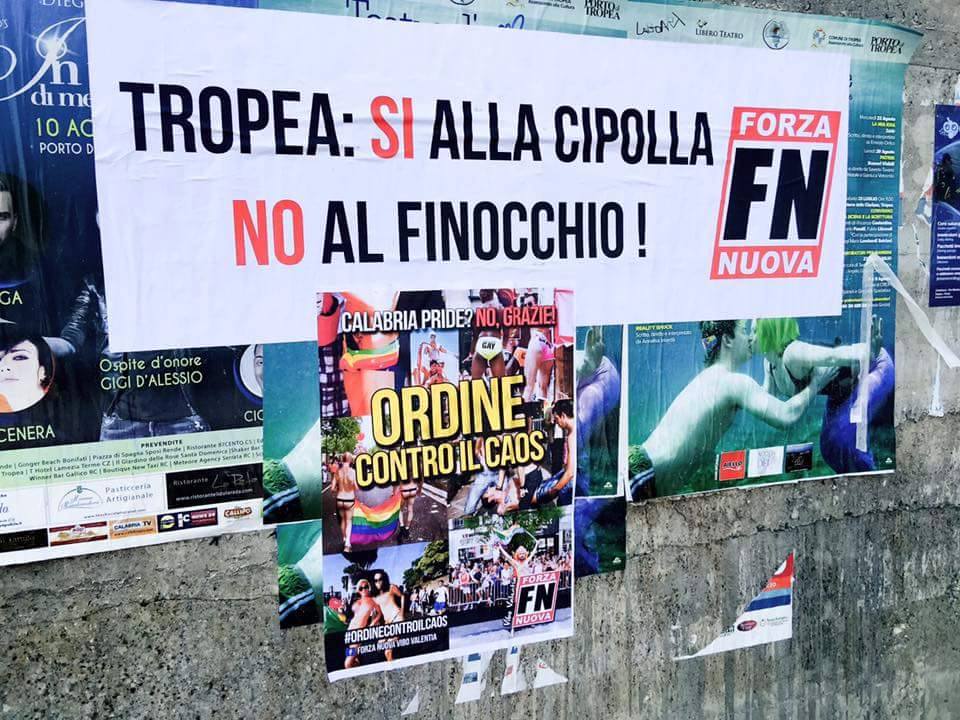 un gazebo. I militanti di Forza Nuova hanno affisso in varie zone della