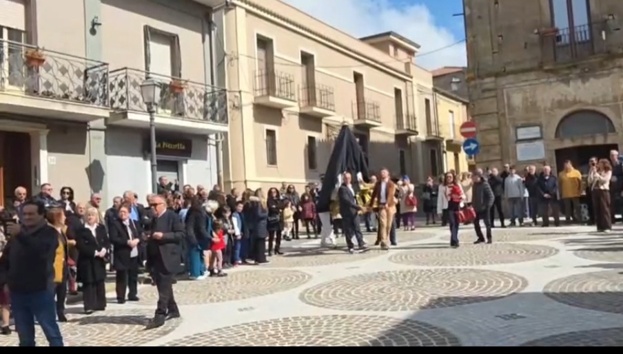 Francavilla Angitola (vv) IL Rito della Cumprunta, la rappresentazione drammatica dell’incontro tra il Cristo risorto e La Madonna Addolorata che segna la Pasqua cristiana in mezzo a moltissima gente in piazza Solari , ha avuto luogo l’incontro tra la Madre celeste e il Figlio Risorto.