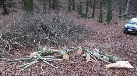 Recandosi sul posto dove i soggetti avevano presumibilmente trafugato la legna, si riscontrava la presenza di una pianta di faggio del diametro di circa 70 cm, con del legname già depezzato e sramato.