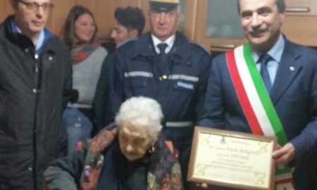Gerace- Ha raggiunto il traguardo dei cento anni Paola Pellegrino, da quindici cittadina geracese. Nata il 24 gennaio del 1916, vive in contrada Merici di Gerace, accudita amorevolmente dai suoi sei figli, venti nipoti e diciassette pronipoti. La signora Paola, rimasta vedova a soli 23 anni, con tre figli, si è risposata ed ha avuto altri tre figli. Il sindaco di Gerace, Giuseppe Varacalli (presente anche l’assessore Giuseppe Macrì ed il Comandante della Polizia Locale, Antonio Lacopo), ha omaggiato la centenaria con una pergamena ricordo recante gli auguri dell’Amministrazione Comunale “per il raggiungimento di questo splendido traguardo”, ed un bouquet di fiori, doni che la signora ha particolarmente gradito. Una delle figlie ha dichiarato “Si è sempre presa cura di noi ed ha lavorato tanto per farci crescere bene. Oggi sono felice di essere qui con lei e di festeggiarla con i miei fratelli ed i miei familiari”. Per celebrare il suo centenario i familiari della signora Paola hanno organizzato una festa, tenutasi nella sua casa, alla quale hanno partecipato parenti, amici e vicini. I pronipoti di “nonna Paola” le hanno fatto preparare una torta speciale sulla quale è stata riprodotta l’immagine della signora ed una dedica: “100 anni fa è nata una donna speciale che durante la sua vita ha spesso asciugato lacrime e donato sorrisi. E in questo giorno particolare noi tutti vogliamo ringraziarti per averci ascoltati e consigliati. Buon compleanno bisnonna”.