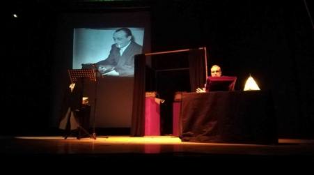 L’attore napoletano ha inframezzato il suo racconto di un Antonio de Curtis inedito – che si rifugiava nel suo “pensatoio” e che in solitudine scriveva poesie e melodie -, con la proiezione di filmati in cui la stessa Liliana de Curtis rivela la grande passione del padre per la scrittura. Un “pensatoio”, termine coniato proprio da Totò, presente in scena insieme al magnetofono che veniva utilizzato dal Principe per registrare i suoi “appunti” vocali.