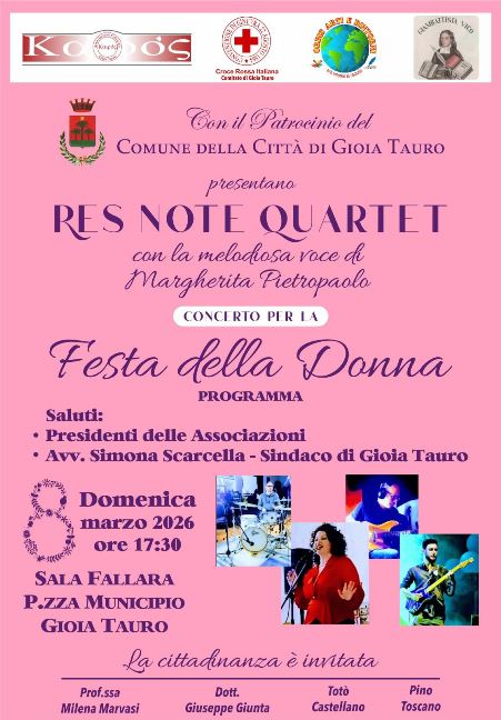 Gioia Tauro, Concerto per la Festa della Donna alle ore 17.30 a Piazza Fallara