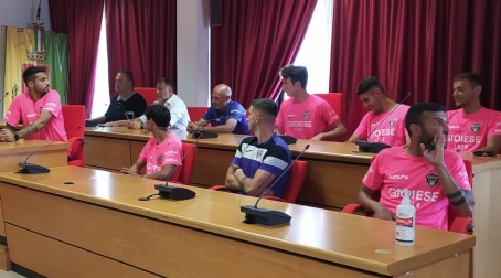 Oggi pomeriggio nell’aula Consiliare Antonino Scopelliti, del Palazzo Comunale di Gioia Tauro il Sindaco di Gioia Tauro, Aldo Alessio alla presenza del vice sindaco Carmen Moliterno degli Assessori Andrea Macino, Francesco Ierace e del Consigliere di Maggioranza Enzo Filippone hanno incontrato la squadra di calcio della Gioiese 1918 per un pubblico riconoscimento per la PROMOZIONE in ECCELLENZA . Nella circostanza , Il Sindaco ha formulato i complimenti per il risultato ottenuto dalla squadra della Gioiese, promettendo il massimo impegno per la sistemazione nel migliore dei modi tramite finanziamenti del polivalente. Nella circostanza, sono state consegnate da parte dell’Amministrazione Comunale ai Co-Presidenti Raso Pulimeni, all’allenatore Graziano Nocera ed al capitano della Gioiese Domenico Stillitano delle targhe di merito.