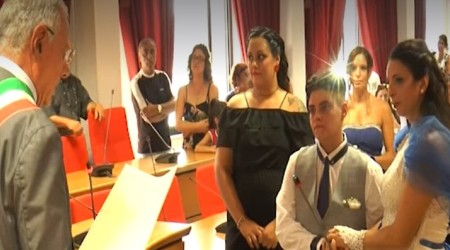 Matrimonio civile per Pina e Lina. Sono loro le prime due donne convolate a nozze in Calabria. Di fronte al sindaco di Gioia Tauro, Aldo Alessio, città in cui risiedono e lavorano da circa nove mesi, hanno pronunciato il fatidico “sì”. Il primo cittadino ha coronato mercoledì il sogno della 29enne e della 40enne d’origini napoletane che operano nel settore agricolo. Amici e parenti hanno partecipato alla cerimonia insieme ad un nutrito gruppo di residenti che si sono mobilitati per aiutare le due donne nei preparativi. Il ricevimento si è tenuto nel cortile dell’abitazione in cui convivono in via Giovanni XXIII alla presenza di circa 200 invitati. Un gruppo di cittadini gioiesi e di esercenti ha contribuito fattivamente a realizzare il banchetto e i dettagli dei festeggiamenti.