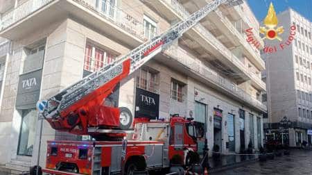 Squadre dei vigili del fuoco del Comando di Catanzaro sede centrale sono impegnate su Corso Mazzini per la rimozione di parti ammalorate di cornicioni e sottobalconi.