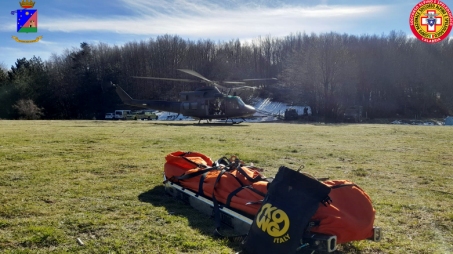 dall’elicottero ab412 dell’EI di operatori e tecnici del SASC, e sull’evacuazione di un ferito attraverso l’impiego della barella in dotazione al SASC con l’ausilio del verricello.