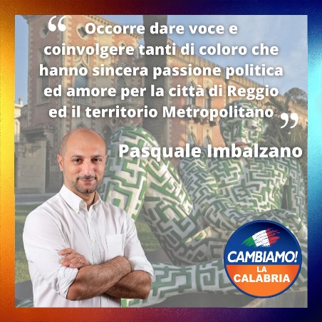 “Sul piano locale, entriamo a far parte di una squadra, che si muove in piena sintonia , dotata di ottime individualità politiche, a partire dall’amico Coordinatore Saverio Anghelone, ed a cui intendiamo fornire il nostro apporto per un maggiore radicamento sul territorio,in stretto contatto col responsabile nazionale Pino Bicchielli ed il responsabile degli Enti Locali sen. Gaetano Quagliarello. Riteniamo ci sia uno spazio importante, anche oltre l’area tradizionale, perché occorre dare voce e coinvolgere tanti di coloro che hanno sincera passione politica ed amore per la città di Reggio ed il territorio Metropolitano. La Piana e la Locride, nelle loro articolazioni, la Costa Viola, l’Area dello Stretto,l’Area Grecanica ed il Capoluogo, non sono aree omogenee sul piano dei punti di forza che intendiamo contribuire a valorizzare e delle criticità ataviche e recenti. E per ogni territorio pensiamo si debbano dare risposte specifiche ed adeguate ai rispettivi potenziali, in buona parte fin qui inespressi” continua Pasquale Imbalzano.