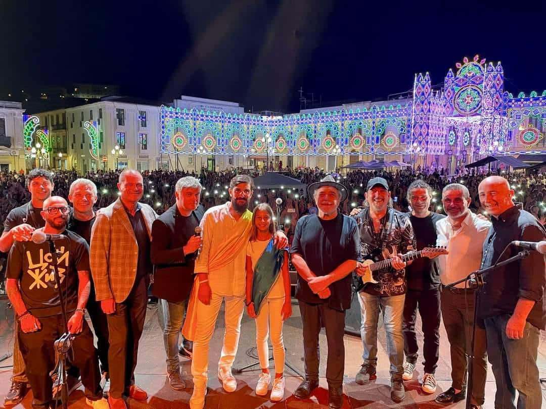 Nino Frassica (Voce), Ivano Girolamo(Piano e Voce),Natale Pagano (tastiere),Umberto Bonasera(Chitarra e Voce), Fabrizio Torrisi(Sax tenore, flauto traverso e Sax Contralto),Angelo Musumeci(Basso),Giuseppe Pullia(Batteria). Frassica mescolando comicità e cabaret è riuscito a stravolgere la serata facendo cantare tutti, avvalendosi dei Los Plaggers band grandi protagonisti che hanno invaso ogni angolo della città, riempendo la festa nella festa. Con loro anche i neo eletti protagonisti della festa della Varia di Palmi, che dal 2013 è stata dichiarata patrimonio Unesco. La Varia meccanica portata per la prima volta a Palmi e inventata da Giuseppe Militano, rappresenta un carro votivo con l’assunzione della Madonna in cielo, in onore di Maria Santissima della Sacra Lettera. Quest’anno saranno i cugini Sara Surace( animella) e Antonio Gangemi ( padreterno) i protagonisti della Varia 2024. A fine spettacolo sul palco per la foto ricordo con Nino Frassica i Los Plaggers, il noto conduttore TV Domenico Milani, il sindaco della città Giuseppe Ranuccio, e tutto il calore del pubblico, tutta Palmi.