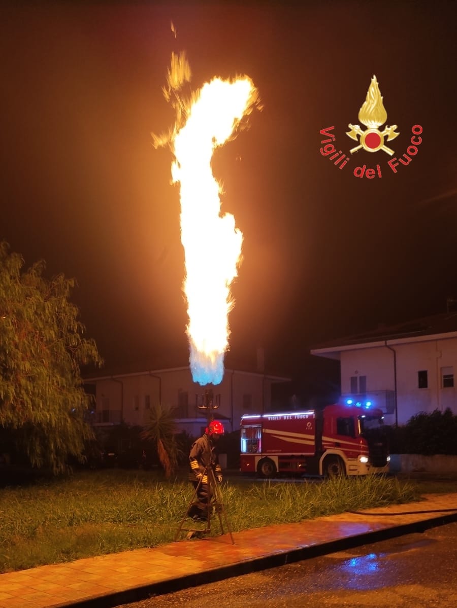 Squadre dei vigili del fuoco del comando di Catanzaro sono state impegnate dalle ore 18.30 circa in via delle Palme, nel comune di Gizzeria per fuga gas da un bombolone interrato.
