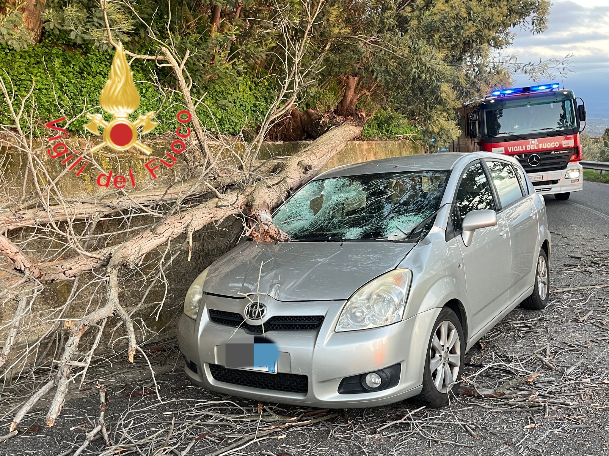 Squadra dei vigili del fuoco del Comando di Catanzaro distaccamento di Lamezia Terme è intervenuta questo pomeriggio nel comune di Gizzeria per incidente stradale. Una la vettura coinvolta che, percorrendo la strada in da Gizzeria superiore verso la zona marina, veniva travolta dalla caduta di un albero.