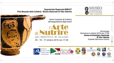 Farà da trait d’union L’Arte di Nutrire, sotto la direzione artistica di Marilena Morabito, che ha come sottotitolo Gli aperitivi al museo, per sottolineare il comune denominatore delle serate (domenica 4, sabato 10 e sabato 17 ottobre 2015): una serie di finger food creati per l’occasione dagli Istituti Alberghieri di Vibo e Paola, utilizzando prodotti messi a disposizione da aziende locali ed offerti come cadeau di benvenuto ai visitatori.