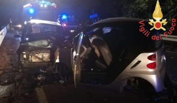 Un terribile incidente stradale si è verificato nella notte ed ha coinvolto tre auto, una Smart, una Panda ed una Ford Focus. Tra le persone ferite anche una donna incinta. L’impatto si è verificato nei pressi del Villaggio del Golfo sulla statale 18 a Nocera Terinese ed ha provocato il ferimento grave di tre persone. Altre due persone sono rimaste ferite in modo lieve tra cui una ragazza in gravidanza. Sul posto Carabinieri, Vigili del Fuoco e sanitari del 118. Le persone rimaste ferite in modo grave sarebbero il conducente della Smart ed una coppia a bordo della Panda il cui conducente è rimasto incastrato tra le lamiere, estratto dal personale dei Vigili del Fuoco. L’incidente ha provocato disagi e rallentamenti sulla Statale che è stata chiusa al transito in ambedue sensi di marcia sino al termine delle operazioni di soccorso.