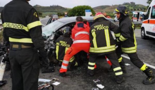 Tre autovetture sono rimaste coinvolte in un incidente stradale avvenuto questa mattina sulla strada statale 107, in località Carpentieri, a Crotone. Quattro persone sono rimaste ferite e tre di queste sono state trasportate in ospedale in codice rosso. Sul posto è intervenuta una squadra del vigili del fuoco, insieme alle ambulanze del 118 e alla Polizia Stradale. La squadra dei Vigili del Fuoco ha provveduto ad estrarre dalle lamiere contorte di un’autovettura un uomo e consegnarlo ai sanitari del 118, mettendo in sicurezza l’intera zona dell’incidente. Indagini sulla dinamica dell’incidente che ha provocato forti rallentamenti alla circolazione stradale.
