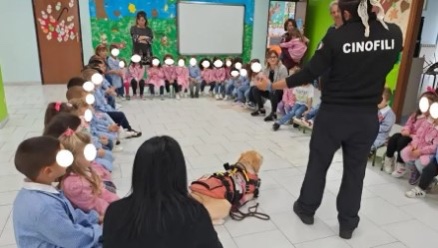 I cani del Reparto Nucleo Cinofili Anpas croce verde Catanzaro vanno ad incontrare i bambini dell’I.C. Catanzaro Nord Est Manzoni