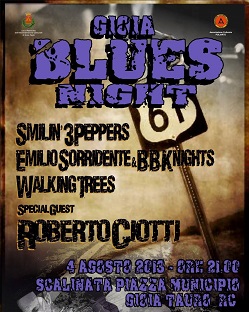 La Scalinata di Piazza Municipio di Gioia Tauro ospiterà il 4 agosto 2013 il ‘Gioia Blues Night’, evento prodotto dall’Associazione Poliarte e patrocinato dal Comune di Gioia Tauro, che vedrà la presenza sul palco di Roberto Ciotti oltre a due band attive da molti anni in ambito rock blues.