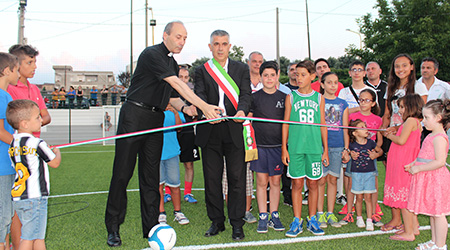 Dopo il taglio del nastro e la benedizione del parroco don Domenico Caruso, amministratori comunali e tecnici progettisti hanno ufficialmente battezzato il nuovo sintetico con una partita amichevole che ha visto anche la partecipazione del sindaco di Terranova Sappo Minulio, Salvatore Foti, del suo consigliere Carmelo Votano e di Vincenzo Frisina, consigliere comunale di Oppido Mamertina.