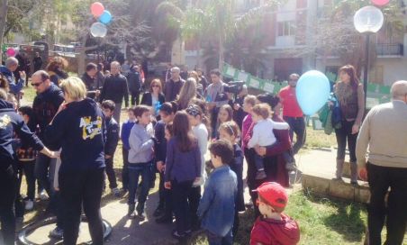 È domenica finalmente! Volano palloncini, i gerani sorridono al sole dell’equinozio mentre i bimbi calpestano per la prima volta il polmone verde del centro città.