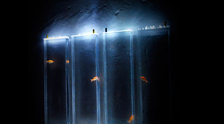 A CRAC espongono una serie dei lavori più importanti realizzati lungo il corso della loro carriera e presentano, in esclusiva per l’Italia, “Decano”, performance musicale orchestrata dai movimenti spontanei di dieci pesci rossi in altrettante vasche.