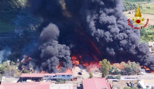 Dopo il terribile incendio sviluppatesi ieri nello stoccaggio di rifiuti dell’ex “RaDi” ed oggi Poly2Oil”, permangono ancora delle criticità e soprattutto la grande difficoltà di domarlo, anche se i materiali plastici dello stoccaggio di rifiuti sono lenti a spegnersi, facendo così aumentare lo sforzo già immane che stanno facendo i Vigili del fuoco supportati dai volontari della Protezione Civile che si stanno sacrificando per cercare di domare un terribile incendio, un disastro ambientale di proporzioni enormi e dopo che sarà finito tutto, ci sarà da quantificare i danni sia in termini di distruzione che in quello sanitario, vista l’enorme nube di fumo che sta invadendo la Piana di Gioia Tauro, in merito alla diossina sprigionata.