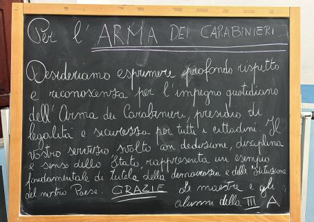Sulla lavagna della loro classe, i ragazzi hanno scritto parole di sincero apprezzamento per l’impegno quotidiano dei Carabinieri, evidenziandone il ruolo fondamentale a tutela della legalità e della sicurezza della collettività.