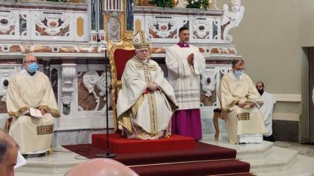 «Qui la statio di partenza, il capolinea del Sinodo, la Chiesa Cattedrale, madre di tutte le altre Chiese della Diocesi, casa di preghiera intorno al Vescovo, sede del suo magistero e del suo governo, per riscoprirsi, avvertirsi Chiesa una, compatta, caricata dall’incontro con Dio per incontrare nella pace, senza divisioni, invidie, fratture, risentimenti, invisibili pregiudizi, i fratelli per amarli tutti come egli, Padre ama, quali che siano gli alberi genealogici, le provenienze etniche, le biografie lineari, avventurose o contorte, le posizioni ideologiche, le posizioni culturali, le appartenenze lobbistiche, convincimenti radicati – anche avverse –, chiaramente rilevabili o vegetativi nel sottobosco dei poteri occulti e/o del male scientificamente programmato e lucidamente perpetrato» ha proseguito il pastore spingendo poi a lavorare sull’Instrumentum laboris, che è un punto di partenza del cammino che sarà indirizzato dallo Spirito Santo – «L’abbiamo qualificato piattaforma di partenza, aperta a integrazioni, arricchimenti, perfezionamenti accolti e raccolti Sinodo progredendo, nuclei tematici generativi per ulteriori riflessioni. Possiamo accostarvi la specificità di Lineamenta, cioè di tracciato, proprio di quando si viaggia: prevista la rotta, arricchente la guida. Questa coscienza della base, approfondendo in scandaglio zone nuove o zone d’ombra, andranno a vantaggio dell’insieme e l’esercizio del discernimento, di cui il Sinodo sarà un grande e sicuro tirocinio alla scuola dello Spirito Santo, primo Maestro. Per necessità, le Sessioni sinodali saranno a porte chiuse, ma con le “finestre aperte” e “senza tetto”: dall’alto e da fuori ascolti e rimandi».