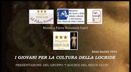 Sabato 23 aprile 2016, alle ore 18.00, a Locri (Reggio Calabria), nella sede del Museo Archeologico Nazionale di Locri, si terrà I giovani per la cultura della locride – Presentazione del gruppo “I kouroi del Sidus club”, interessante iniziativa che coinvolge uno dei comprensori più ricchi di storia dell’intera Calabria.