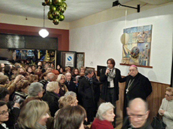 L’arrivo di S.E. Fiorini Morosini acclamato dal Coro delle Muse diretto dal maestro Enza Cuzzola , altro elemento di richiamo per molta gente arrivata da tutta la città. Via San Giuseppe è divenuta palcoscenico di una sentita benedizione poiché come ha ribadito S.E occorre ripartire dalla città e la cultura ne è parte integrante. L’arte serve anche a questo e una targa – scultura può servire a pensare, riflettere e fare sentire i cittadini più vicini.