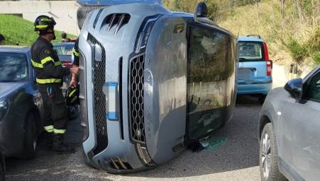 Incidente stradale con un’auto si ribalta nei pressi della Facoltà di Medicina a Catanzaro