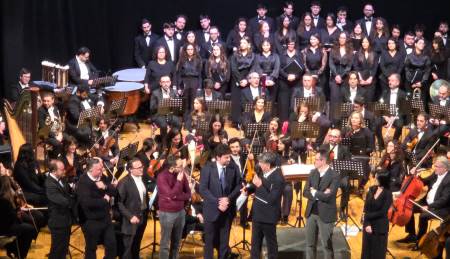La cerimonia è stata accompagnata da un programma musicale di particolare prestigio. L’Orchestra Filarmonica della Calabria e il Coro della Magna Graecia, diretti dal M° Cettina Nicolosi, hanno eseguito il Concerto n. 2 per pianoforte e orchestra di Sergej Rachmaninov, con la partecipazione al pianoforte di Shiran Wang, offrendo al pubblico un’interpretazione di grande intensità artistica. A seguire, l’esecuzione di “Va’ pensiero” ha rappresentato un momento di profonda suggestione emotiva e collettiva.